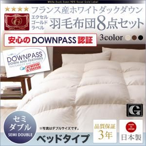- 布団8点セット【ベッドタイプ】セミダブル アイボリー【DOWNPASS認証】フランス産ホワイトダックダウンエクセルゴールドラベル羽毛布団8点セット