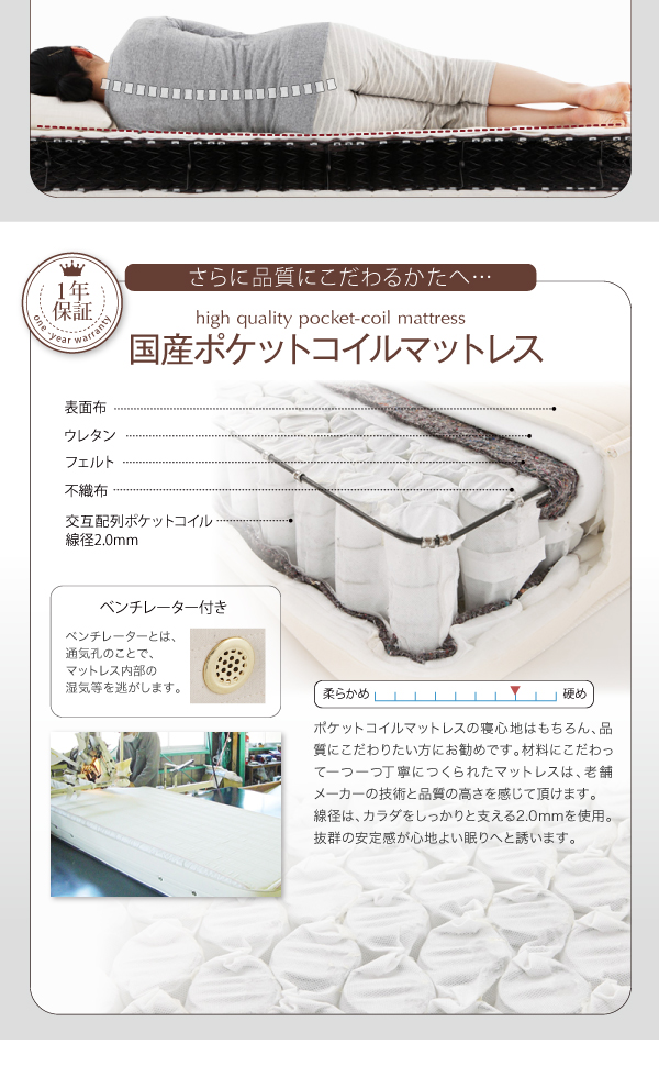 ※1年保証は一部マットレスのみとなります。フレームに保証は付きません。
