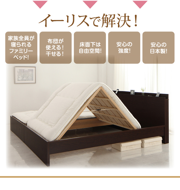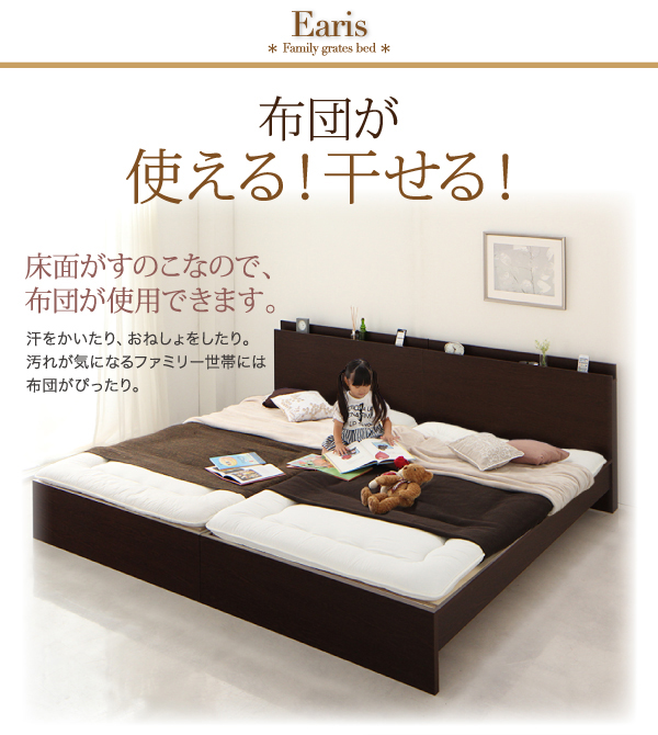 家族が全員一緒に寝られるサイズの大型サイズベッドです。