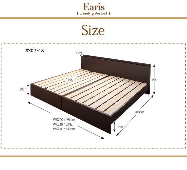 こちらは「すのこベッド ワイドキング200【フレームのみ】フレームカラー:ナチュラル 布団が干せる!国産ファミリーすのこベッド EARIS イーリス」の商品ページです。商品画像や説明文には色違いやサイズ違いの商品情報が載っている場合がございます。