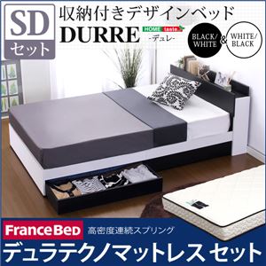 - 収納付きデザインベッド 【セミダブル/ブラックホワイト】 デュラテクノマットレス付き 『DURRE』 二口コンセント/宮付き