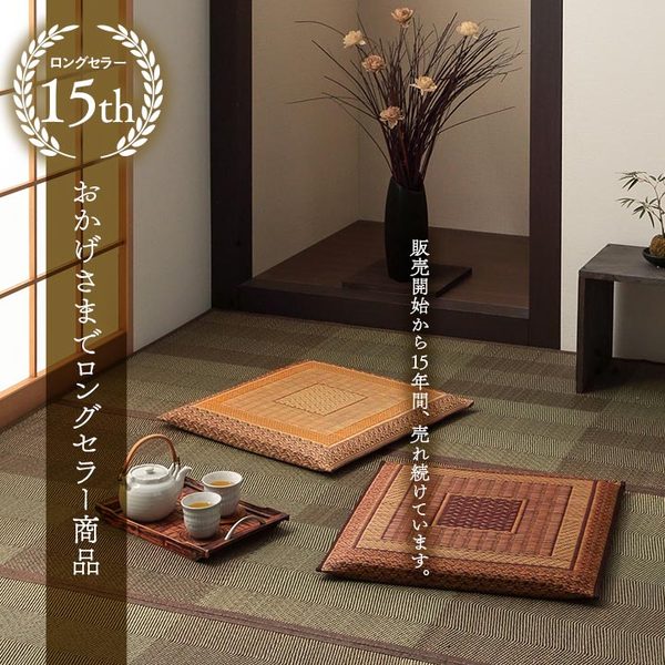 素材:側地=い草(九州産) ※紋織(縦糸が袋織の本数) 中材=ポリエステル100%【固綿40mm】