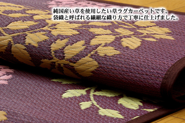 - 純国産 袋織い草カーペット 『ハナガラ』 ボルドー 約191×250cm