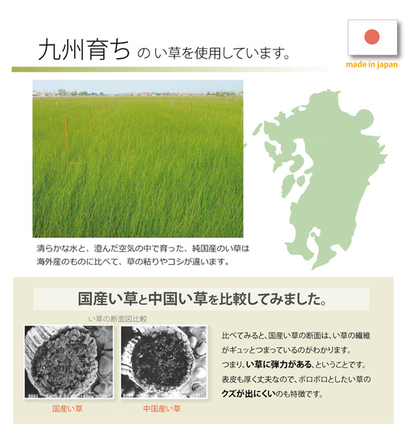 【素材】表地=い草 中材=固綿10mm 裏地=ウレタンフォーム3mm(滑りにくい加工)